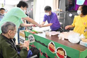 利用者様も店員となって、スタッフと一緒に出店の準備をしています。