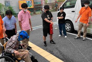 消防署から防災訓練用水消火器をお借りして、消防訓練を実施しました。