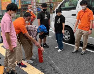 実際に消火器に触れることはあまりないので、戸惑いながらもしっかりと的に水を命中されていました!