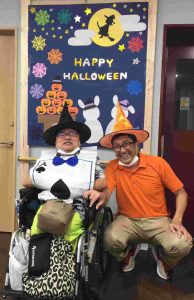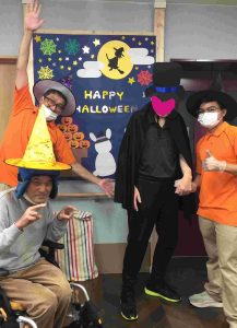 利用者様が過ごされるフロア全体がハロウィンの雰囲気満載で、皆様楽しく元気に過ごされています♪