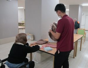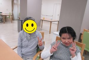 今回は食後にフロアでお過ごしになられている4名の入所者様のおやつタイムの様子をお伝えます?