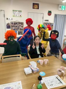 ご利用者様も「鬼は~外」と言う暇もなく、「ぎゃ~~」「あっち行って~~」「写真撮って~~」っとなっておられました。