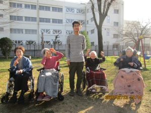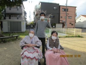 今日は天気に恵まれ、皆様と施設の周辺のお散歩しました。